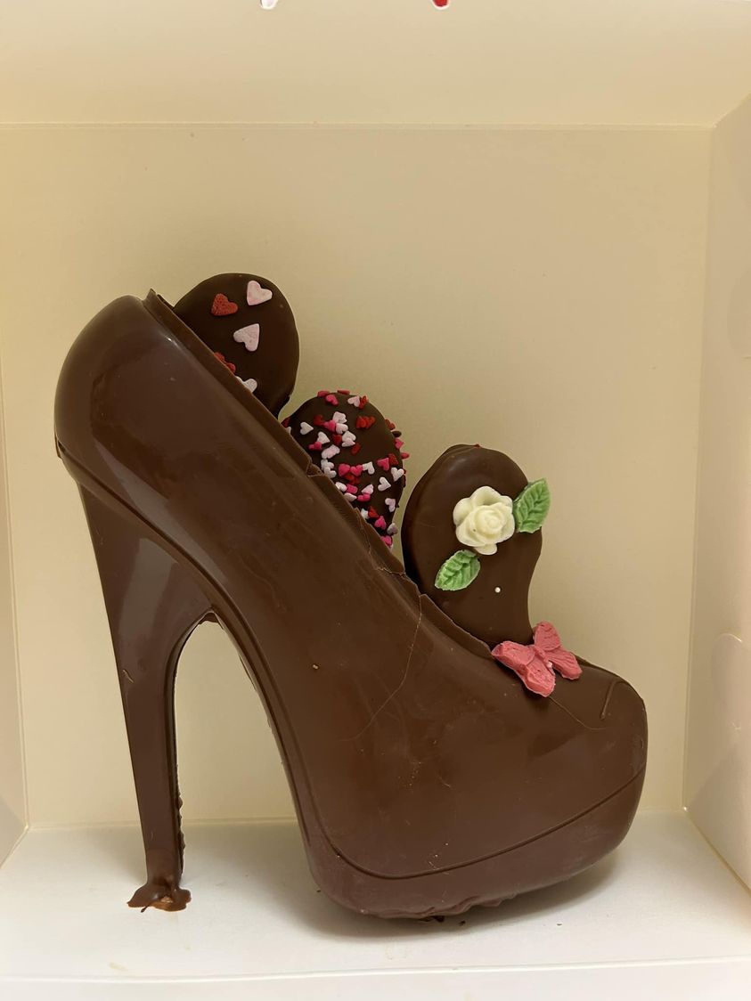 This chocolate she is just too cute! Filled with 4 Chocolate covered Nutter Butter cookies decorated for Valentine's day.