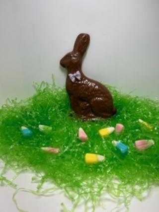 Solid Bunny with White chocolate bow and many colors. available in Milk, Dark and White chocolate